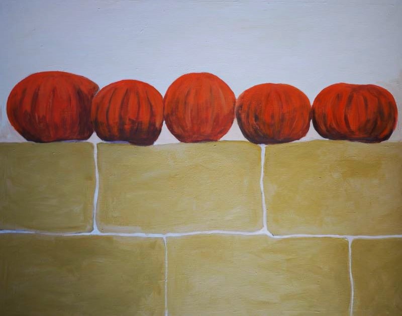 Einfach weiter machen Wenn Vieles zu kompliziert erscheint: Einfach weitermachen. Hier ein neues Bild zu einer Serie mit dem Titel „STILL LEBEN“. FÜNF KÜRBISSE – MALTA, Acryl auf Leinwand, 80cm x 100cm, 600€